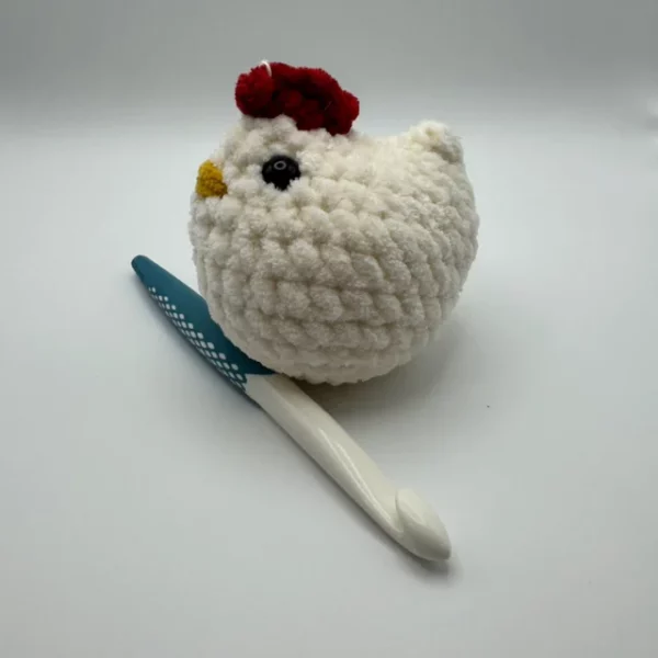 Made with a chenille yarn and safety eyes.
