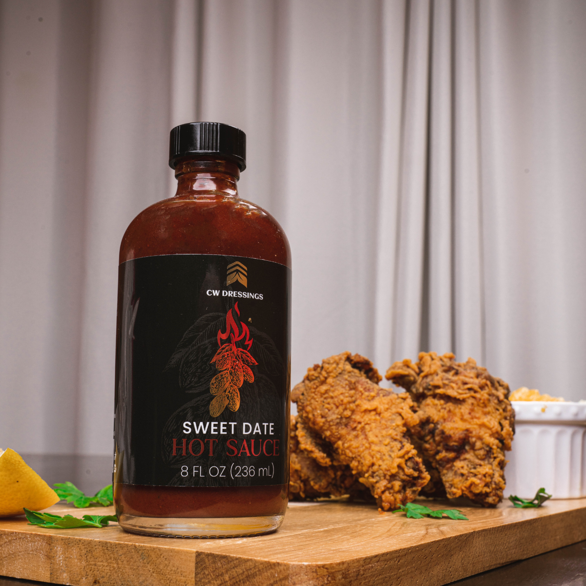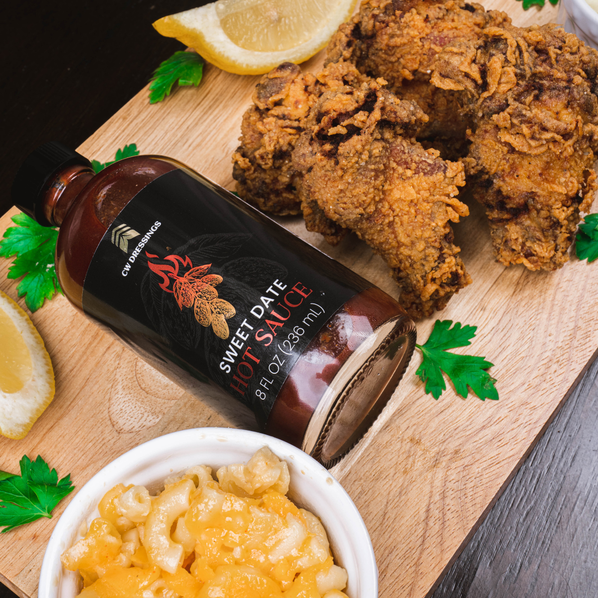 CW Dressings’ Award-Winning Sweet Date Hot Sauce, a harmonious blend of smooth sweetness and bold five pepper blend of heat. This hot sauce caters to the refined palates of discerning individuals.