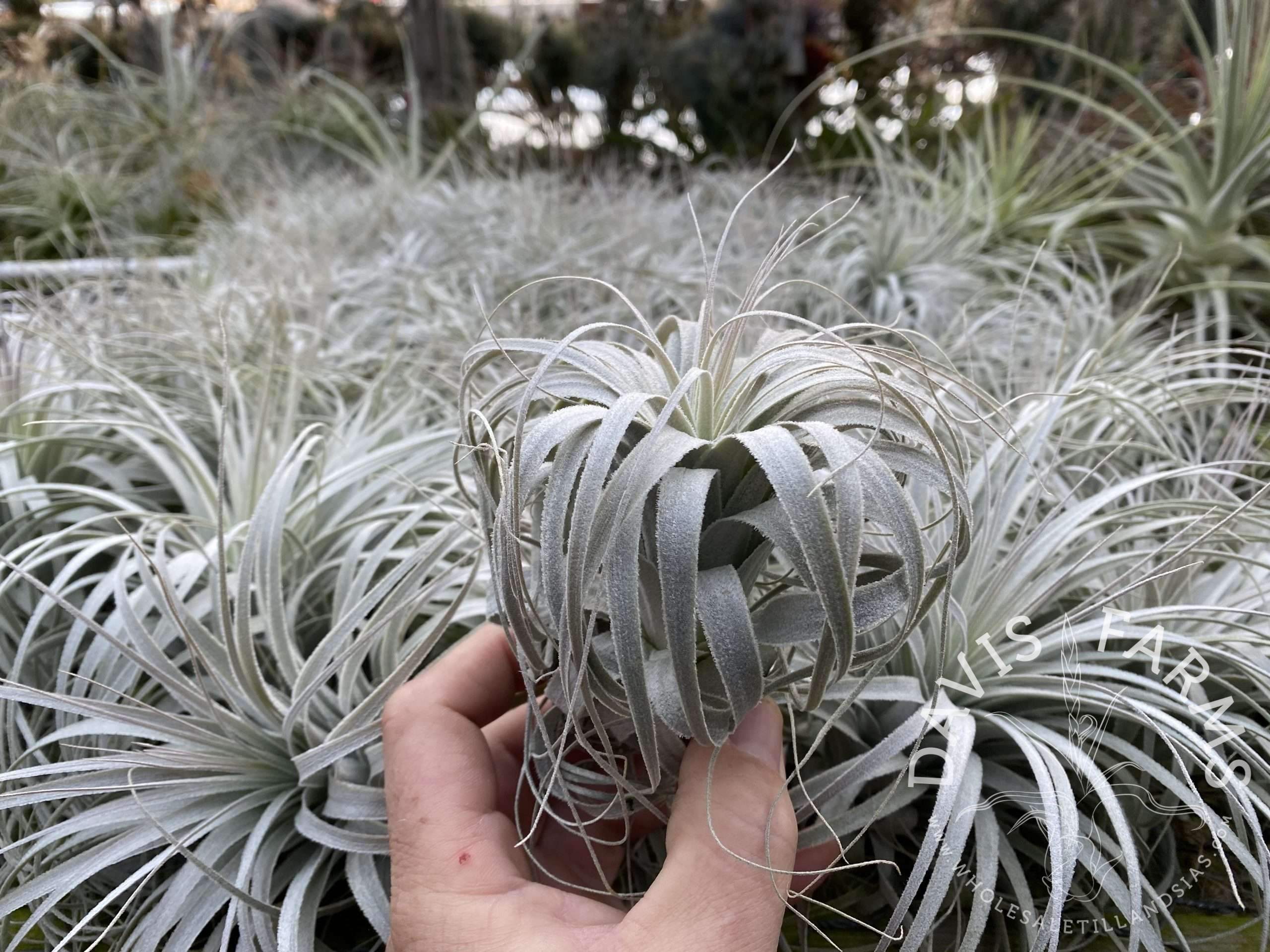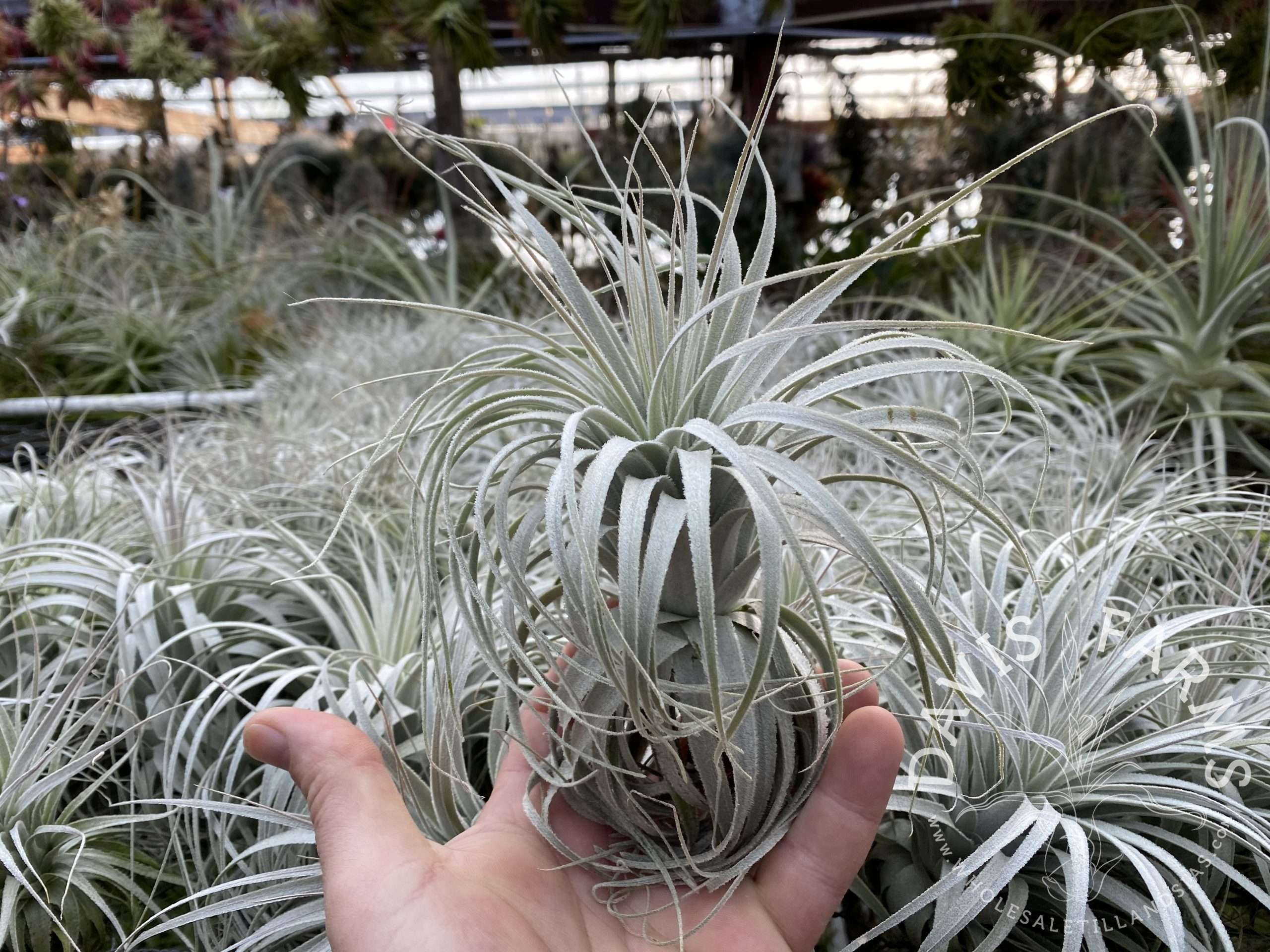 Tillandsia chapeuensis is fairly rare in cultivation. They grow in beautiful rosettes with the leaves recurving as they become mature. We originally purchased the seed parents of these plants as chapeuensis var. turriformis but with the way they grow here in San Diego, we think they look more like chapeuensis and less like the Var. turriformis. This may be due to our harder growing culture here, or this plant may be the regular form of chapeuensis, we will let you make that decision as this is the only chapeuensis we have worked with.