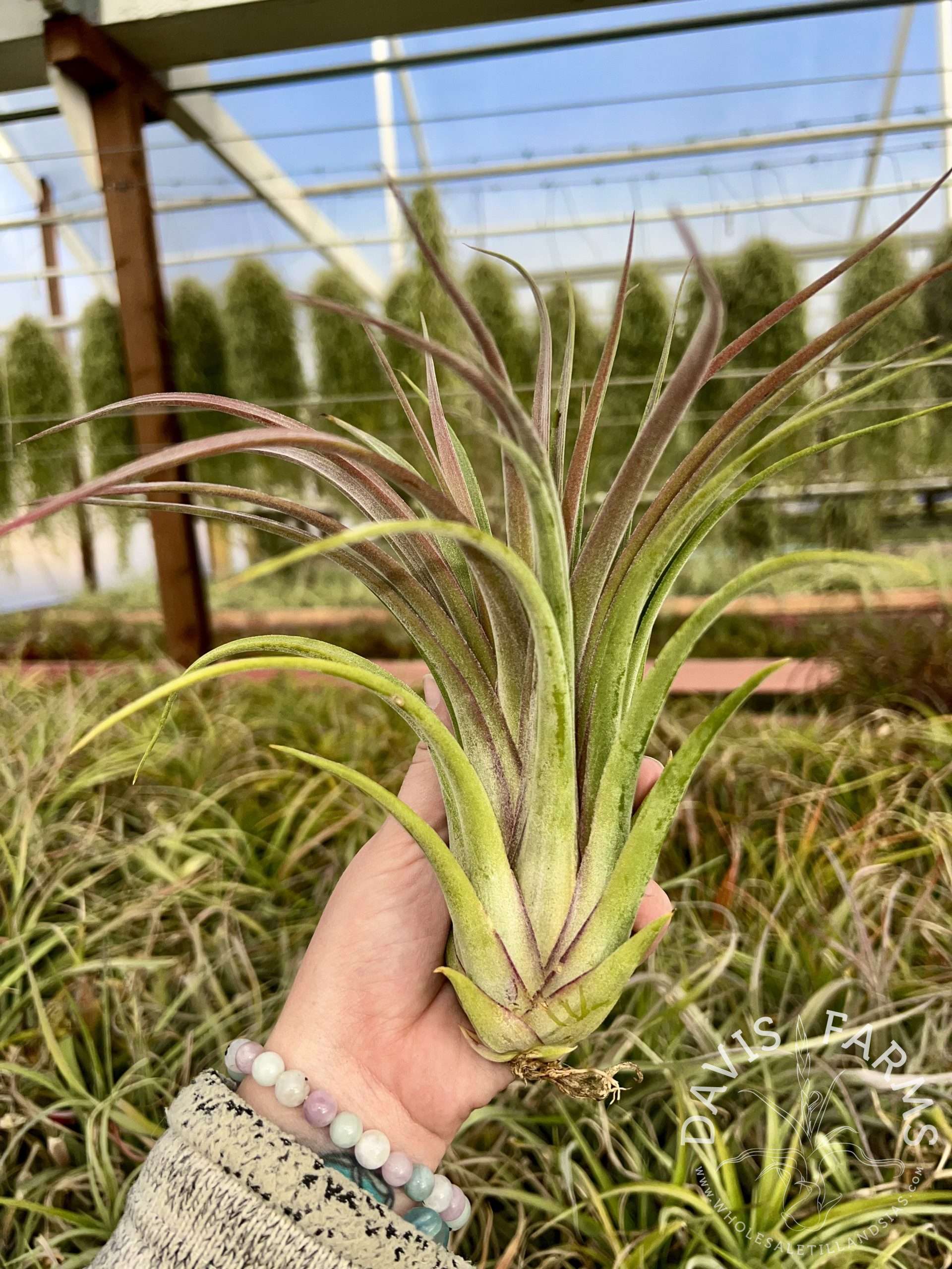 This hybrid results in a striking plant! It typically exhibits a compact growth habit with curved, soft leaves. The colors range from green to blushing pinks and purples. This hybrid will typically blush with brighter light and/or while blooming.